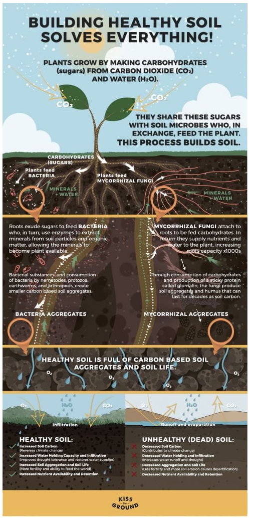 Instead of going into all the biological details of what makes up a healthy soil, I’m going to have the infographic give you the details of the explanation of all the components!